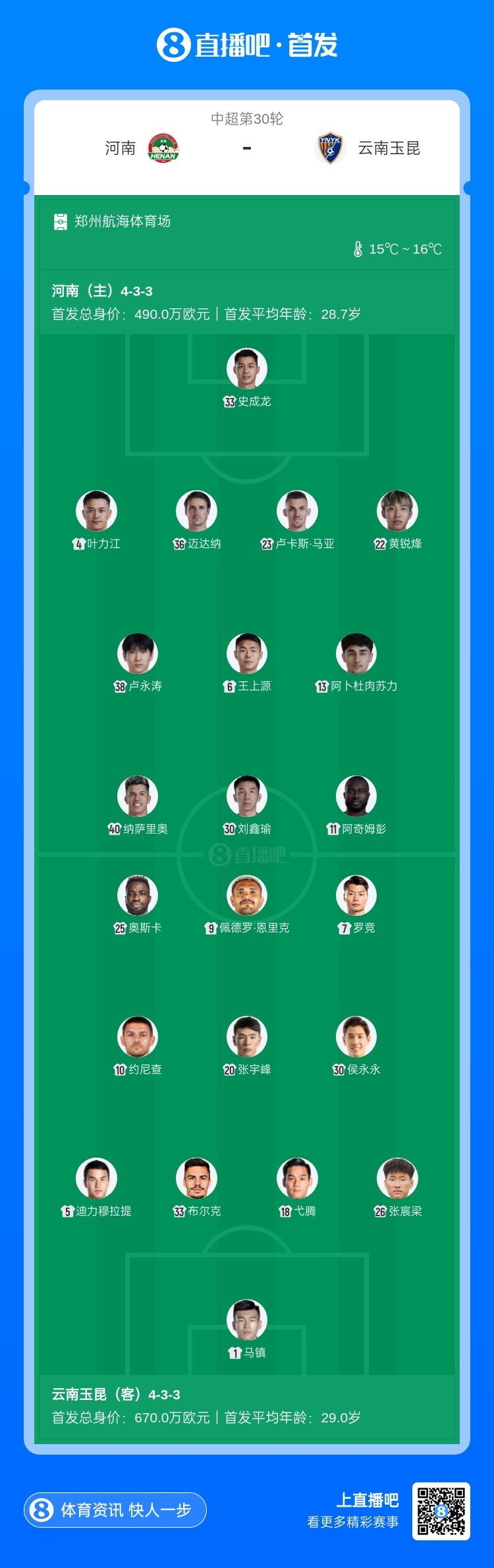 11月22日讯 北京时间15:30,中超第30轮河南vs云南玉昆,比赛在郑州航海体育场打响!上半场,阿奇姆彭低射破门;半场结束前,史成龙送大礼,恩里克扳平比分!下半场,双方均无建树!最终,河南1-1战平云南玉昆;河南队排名中超第10,云南玉昆位列第8。