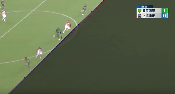 第48分钟,高天意长传打穿,路易斯单刀破门!但因越位进球无效,场上比分仍为北京国安1-0上海申花↓
