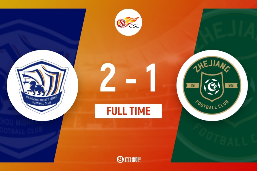 下半场补时6分钟。最终全场比赛结束,沧州雄狮主场2-1浙江队。