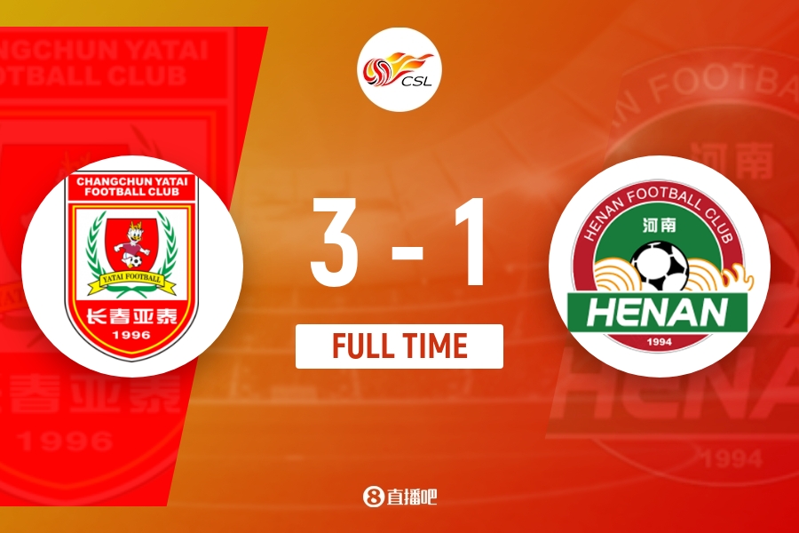 全场比赛结束,长春亚泰3-1河南。