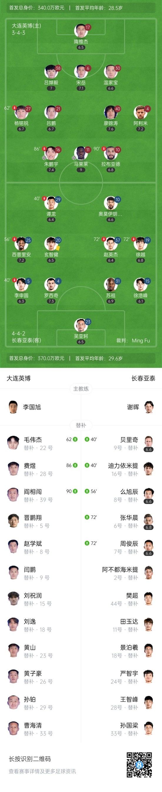 双方首发以及换人信息: