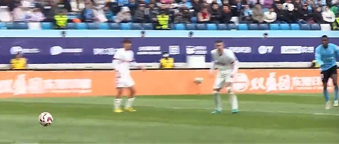 下半场易边再战,第50分钟,朱鹏宇点球点附近回做吕焯毅弧顶远射打在队友身上出底线。↓