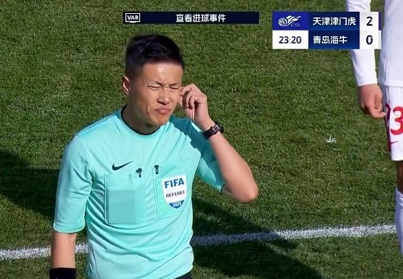 经VAR回放后改判直接红牌将金洋洋罚下。↓