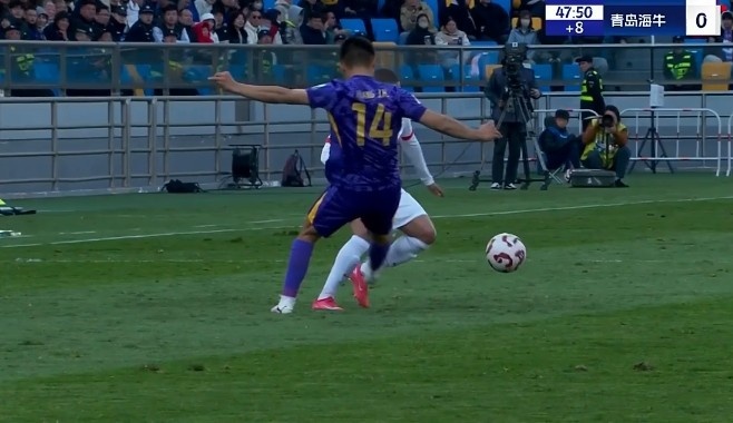 第45+2分钟,黄嘉辉踢倒席尔瓦吃到黄牌。↓