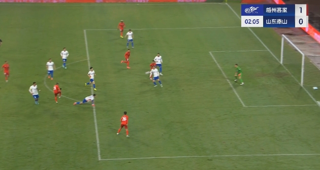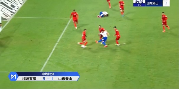 半场战罢,梅州客家暂3-1山东泰山。