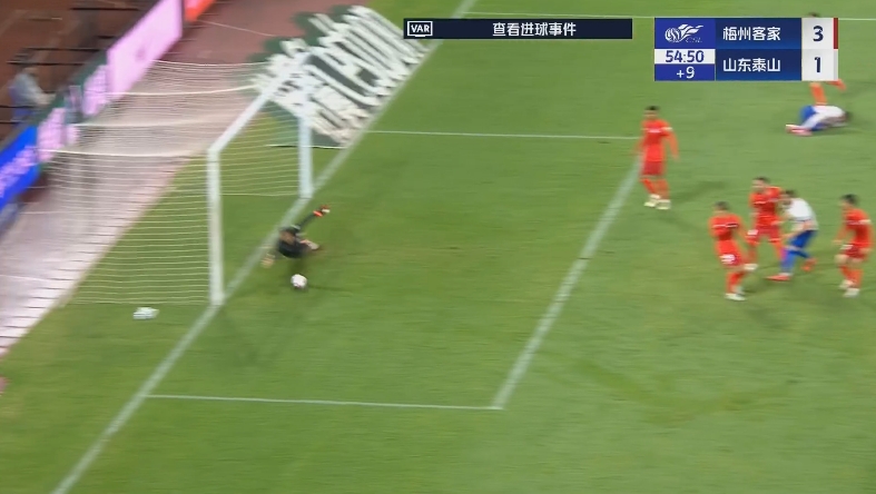 全场比赛结束,山东泰山客场4-3绝杀梅州客家。