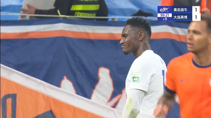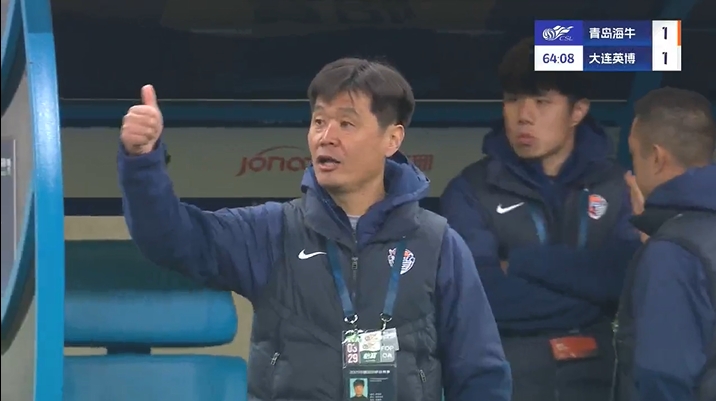 全场比赛结束,青岛海牛主场1-1大连英博。