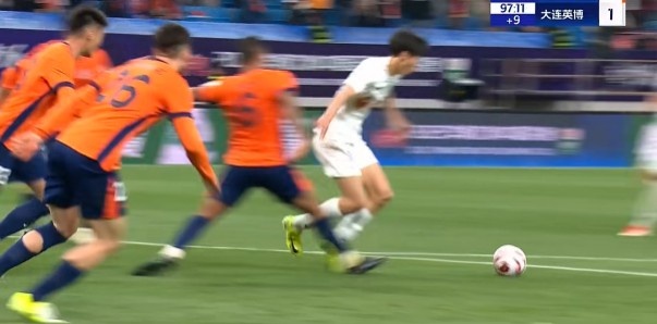 半场战罢,大连英博暂1-0青岛海牛。