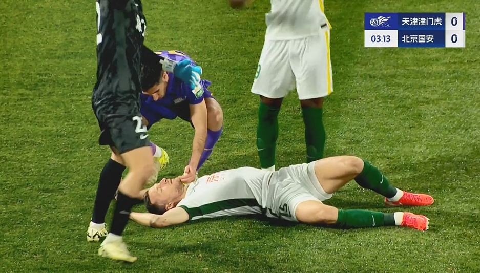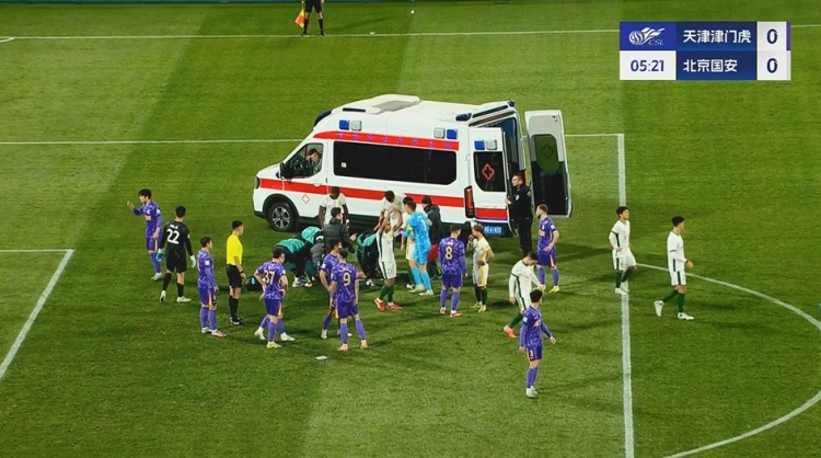 第4分钟,国安外援斯帕吉奇争顶时撞到头部,随后倒地昏迷不起,担架和救护车入场将斯帕吉奇送医↓