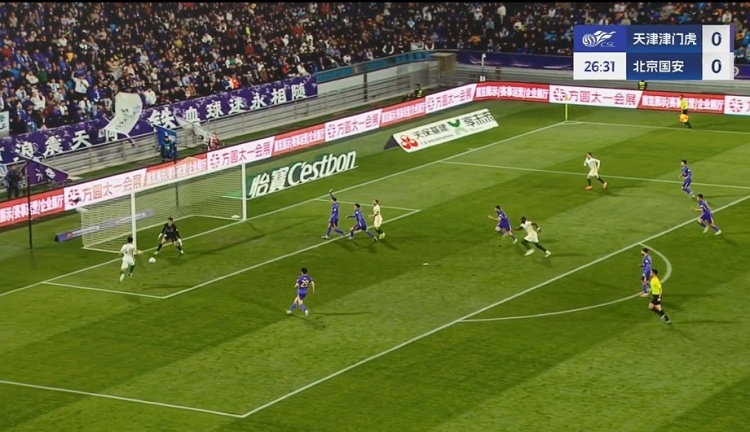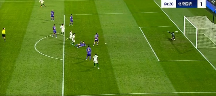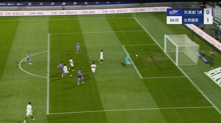 第27分钟,右侧肋部达万起球传中送到后点,无人盯防的李磊跟进小角度凌空垫射入网,国安1-0领先↓