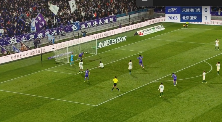 第78分钟,津门虎前场连续的传中,哈达斯传到前点,达万没能解围,基莱斯迅速调整后够着将球挑进球门,津门虎2-1反超比分↓