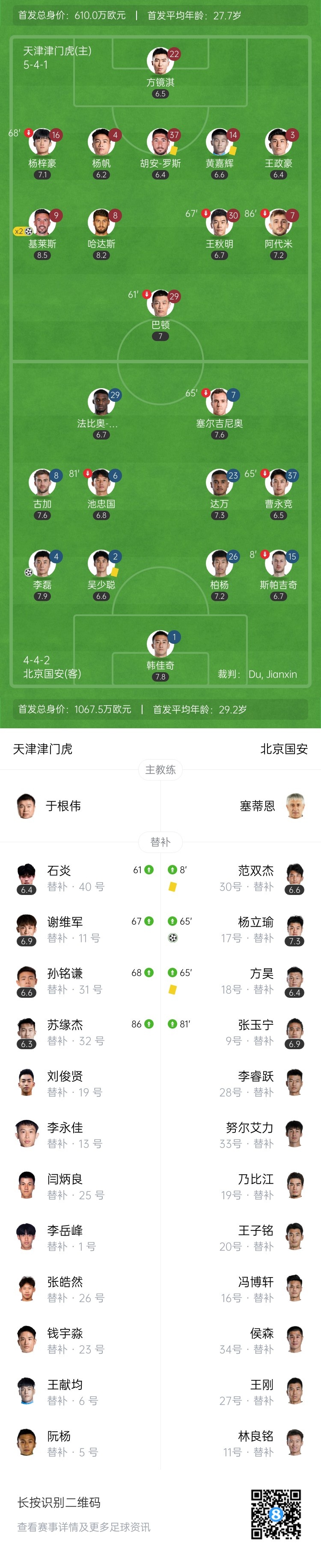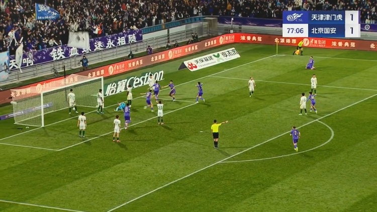下半场补时8分钟。最终全场比赛结束,津门虎2-2国安。