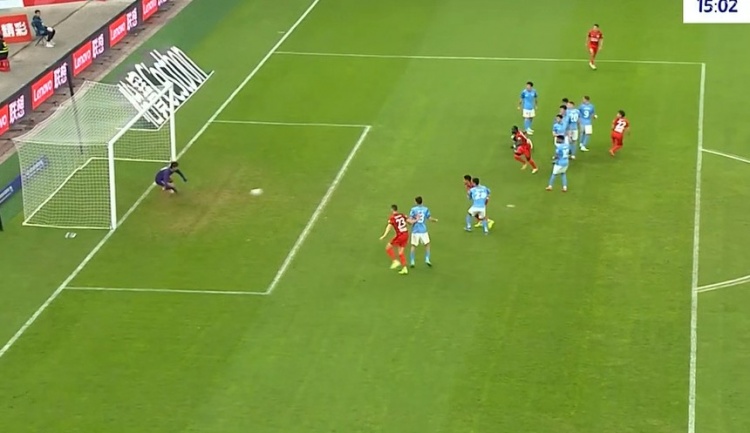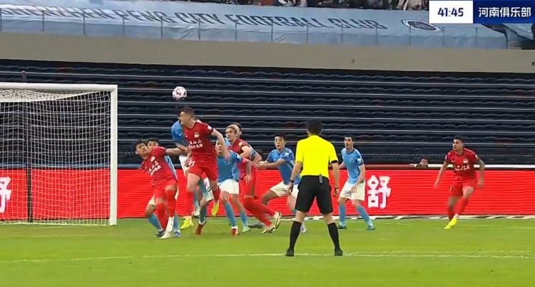 第42分钟,河南起高球,卢卡斯-马亚回头望月将球甩进大门!1-0!河南打破场上僵局↓