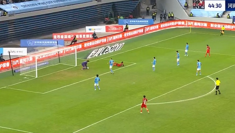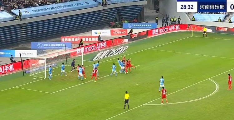 第29分钟,河南角球开出,迈达纳头槌攻门,季家葆将球托出横梁。↓