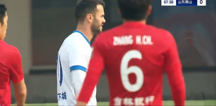 第19分钟,泽卡背身做球,卡扎伊什维利抗住防守球员突破,最后抽射被吴亚轲化解。↓