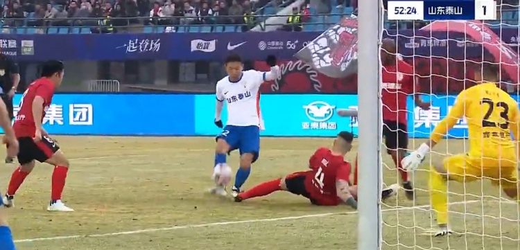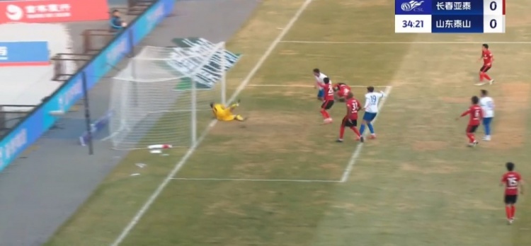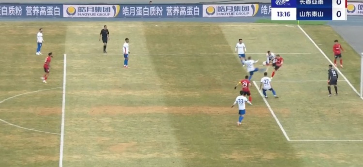 克雷桑头球破门,李源一5轮4助!泰山领先!第34分钟,李源一左路45度角斜传到禁区,克雷桑摆脱亚泰队员头球攻门入网,裁判最初判罚越位,随后通过VAR,裁判改判进球有效,长春亚泰0-1山东泰山!↓