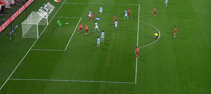 第12分钟,大连右路角球开到禁区后点廖锦涛头球摆渡门前马莱莱头球顶偏了。↓