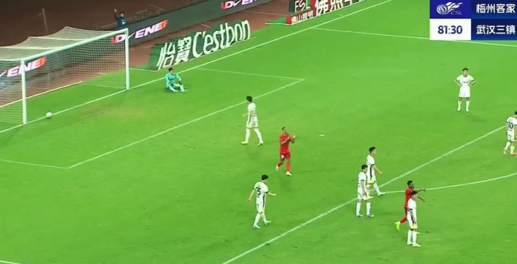 第69分钟,恩戈姆反越位成功抽射破门,边裁第一时间举旗示意越位,但VAR介入后主裁最终判定没有越位进球有效!1-1!梅州客家扳平了比分!↓
