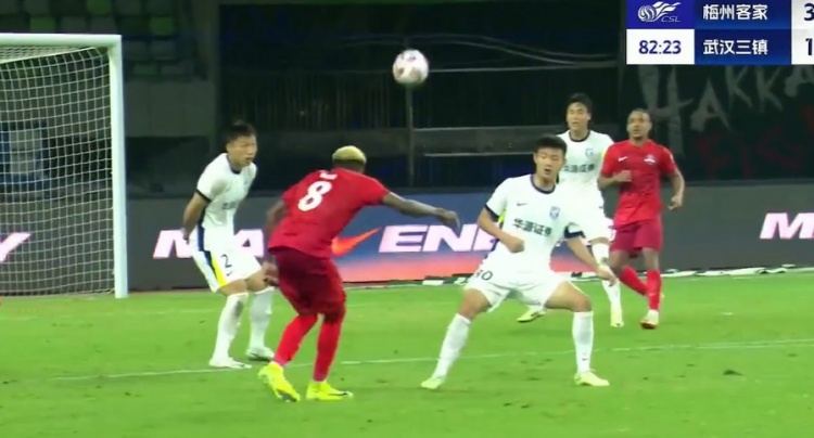 第15分钟,梅州客家战术角球开出,杨超声甩头攻门偏出底线。↓