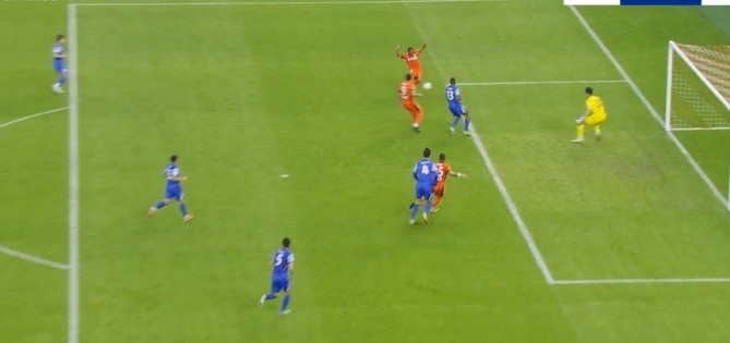 第41分钟,特谢拉弧顶位置闪开空档低射打个反角度再次击中立柱弹出底线。↓