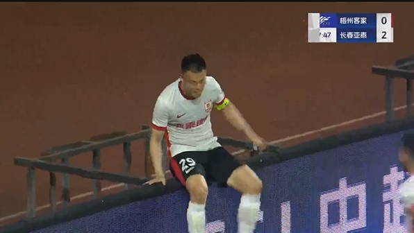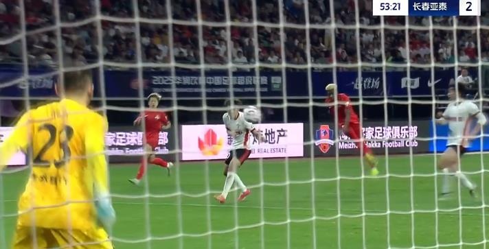 第90+7分钟,饶伟辉左路传中,季胜攀门前抢点扳回一球,梅州客家1-3长春亚泰。↓