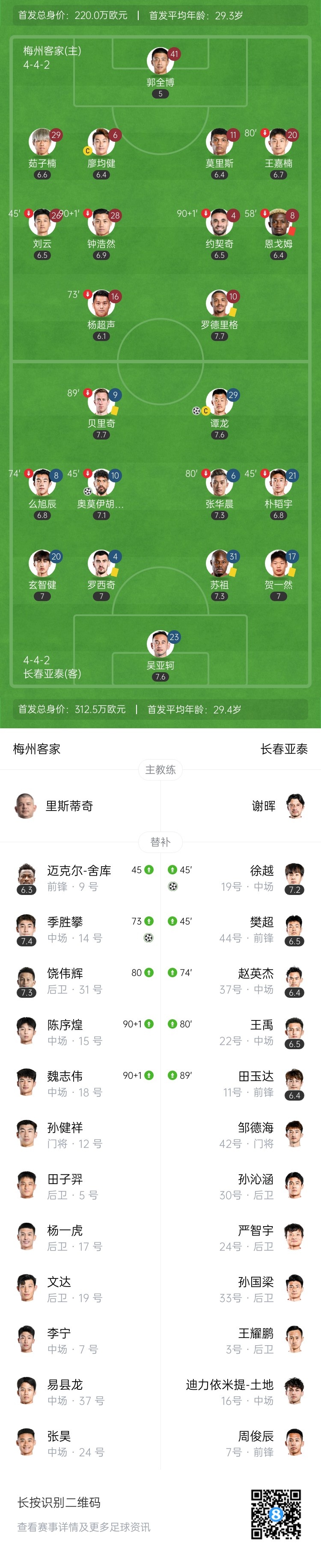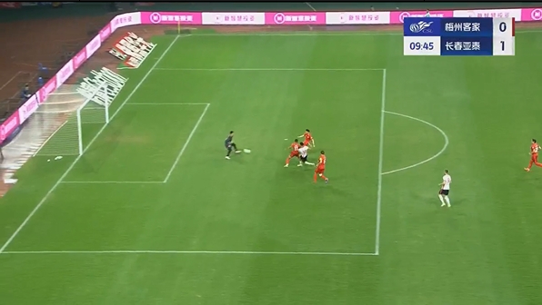 全场比赛结束,梅州客家1-3长春亚泰。