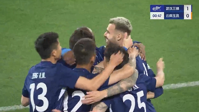 全场比赛结束,武汉三镇主场3-1战胜云南玉昆。