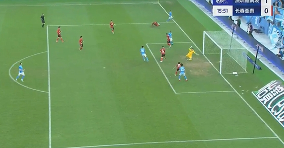 埃杜-加西亚单刀破门!深圳再度领先!第56分钟,卡尔采夫中场不停球直塞,亚泰防守球员放铲滑倒,埃杜-加西亚单刀球轻松搓射得手,深圳新鹏城2-1长春亚泰!↓