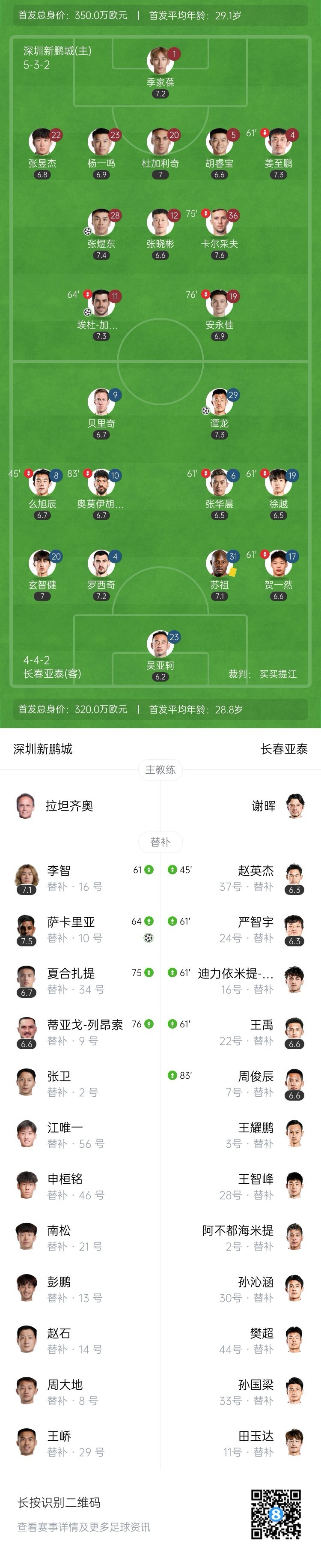 37岁谭龙连续4场破门+7轮5球!亚泰扳平!第20分钟,贝里奇转身直塞,19岁小将玄智健左路传中落点精准,37岁谭龙高高跃起抢点头球破门,深圳新鹏城1-1长春亚泰!↓
