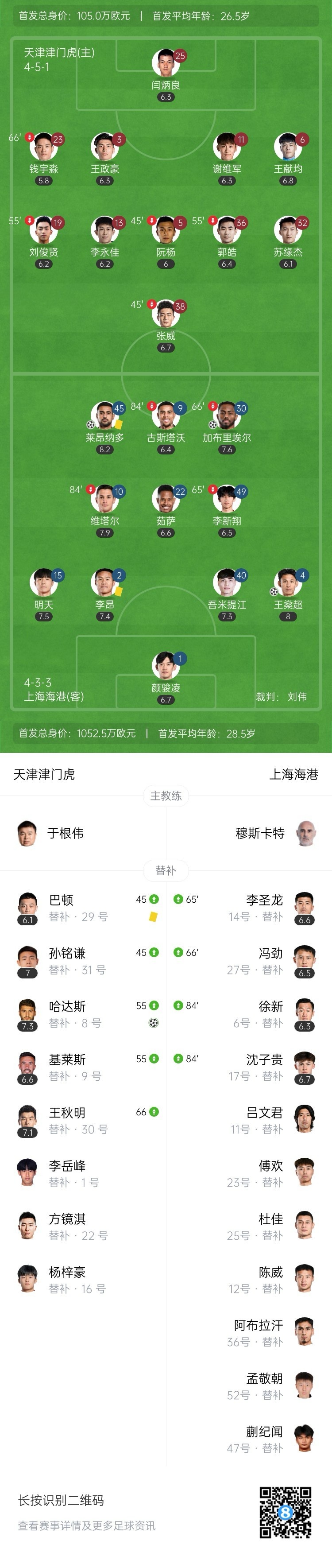 第79分钟,津门虎右路角球造成海港禁区乱战,津门虎有球员倒地,随后经过VAR提醒,主裁查看回放发现茹萨踩踏王献均后吹罚点球。第83分钟,哈达斯点射破门,津门虎1-4海港。↓
