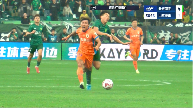 第27分钟,吴兴涵飞铲林良铭,裁判第一时间给了黄牌,但在VAR介入后最终改判,吴兴涵直红被罚下!山东泰山少打一人!↓