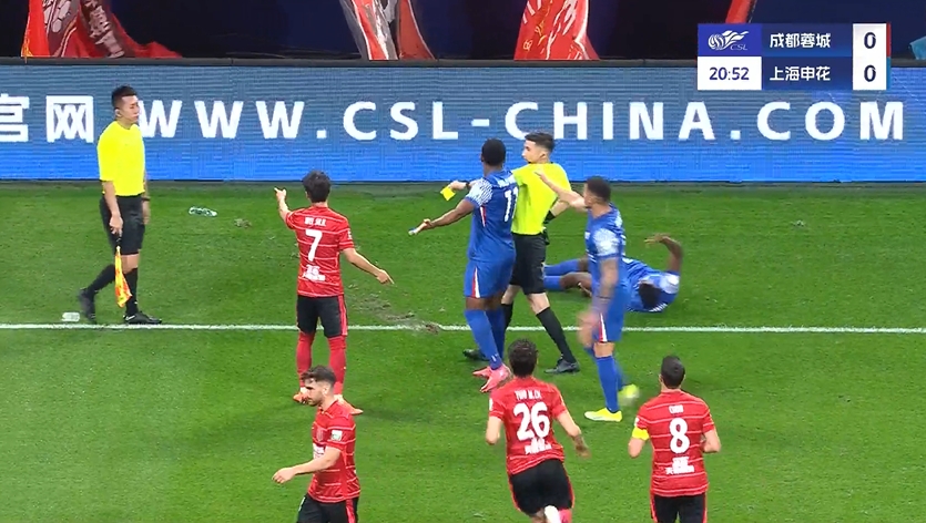 第49分钟,杨明洋拉拽特谢拉,两人随后发生冲突。↓