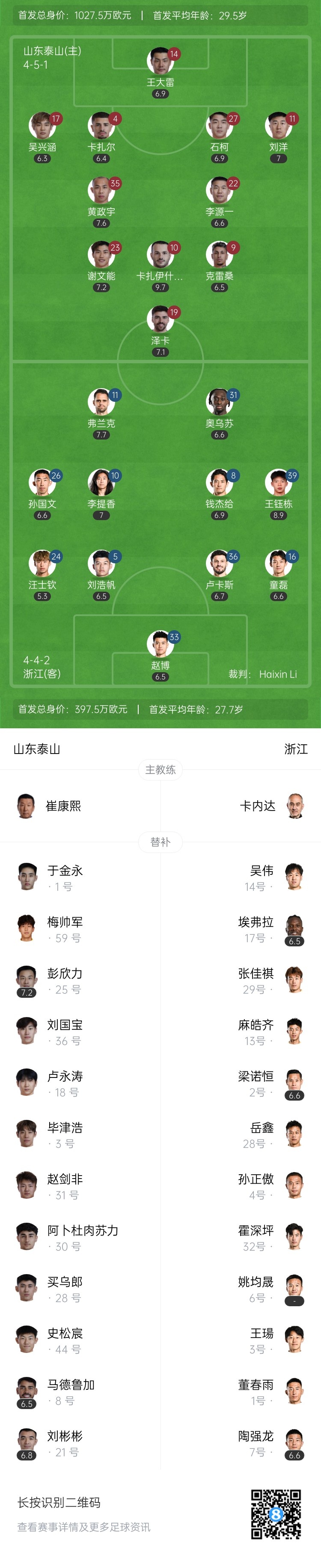 5月10日讯 中超第12轮,山东泰山坐镇主场济南奥体中心迎战浙江队。上半场,王钰栋闪击破门打进赛季第7球后失单刀,汪士钦送礼,卡扎伊什维利破门。易边再战,谢文能反超比分,卡扎伊什维利个人秀,王钰栋失单刀后头槌破门完成双响,最后时刻卡扎伊什维利上演帽子戏法。最终泰山4-2浙江。积分榜方面,泰山近五轮首胜20分第五,浙江队15分第八。