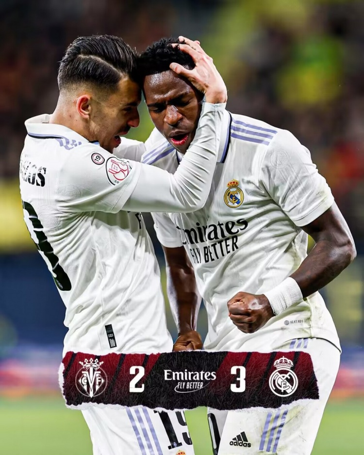 1月20日讯 北京时间1月20日04:00,西班牙国王杯八分之一决赛皇马客场挑战比利亚雷亚尔的比赛,上半场卡普埃开场爆射建功,楚克乌泽单刀破门,下半场维尼修斯单刀扳回一城,米利唐扳平,塞巴略斯推射逆转,最终,皇马客场3-2逆转比利亚雷亚尔晋级。