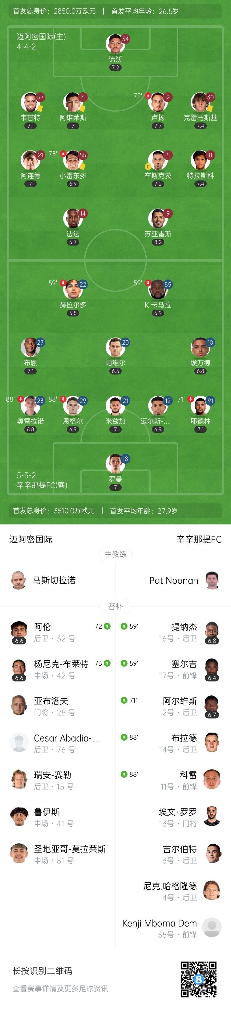 7月27日讯 北京时间7月27日上午7:15,美职联迈阿密国际坐镇洛克哈特体育场迎战辛辛那提FC。上半场,梅西禁赛,苏牙搓传造杀机。下半场,主队绝杀被吹。全场结束,迈阿密国际0-0辛辛那提FC。本场过后,迈阿密国际积42分位列东部第五,辛辛那提积49分暂居东部第一。