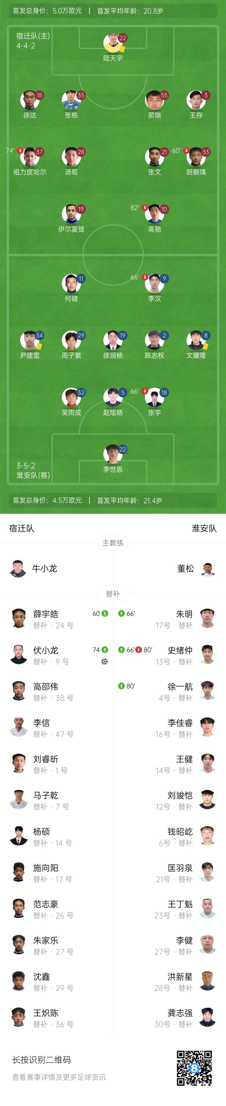 第80分钟,伏小龙门前小角度打门得手!宿迁队2-0淮安队↓