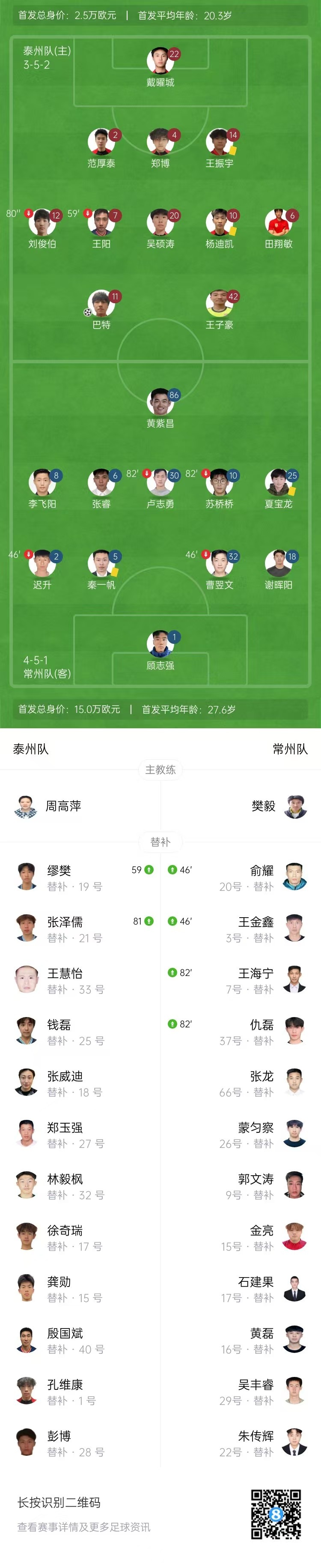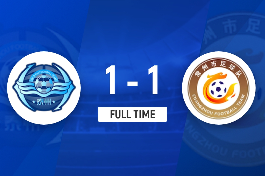 全场比赛结束,泰州1-1常州。