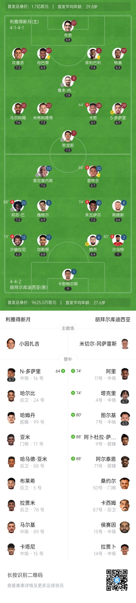 双方首发以及换人信息: