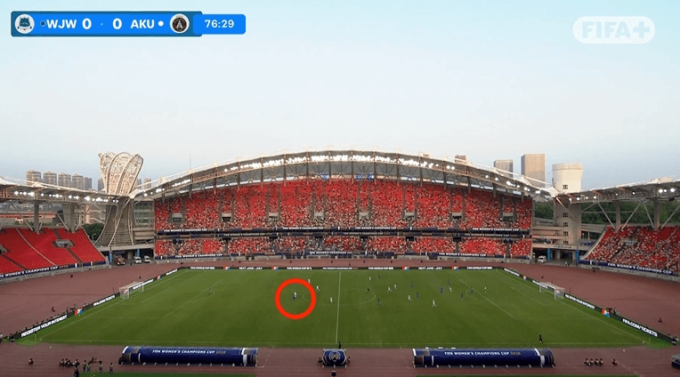 比赛第74分钟,门将陈晨策动,王霜过掉门将打门得手!但VAR介入后裁判示意王霜越位在先进球无效↓