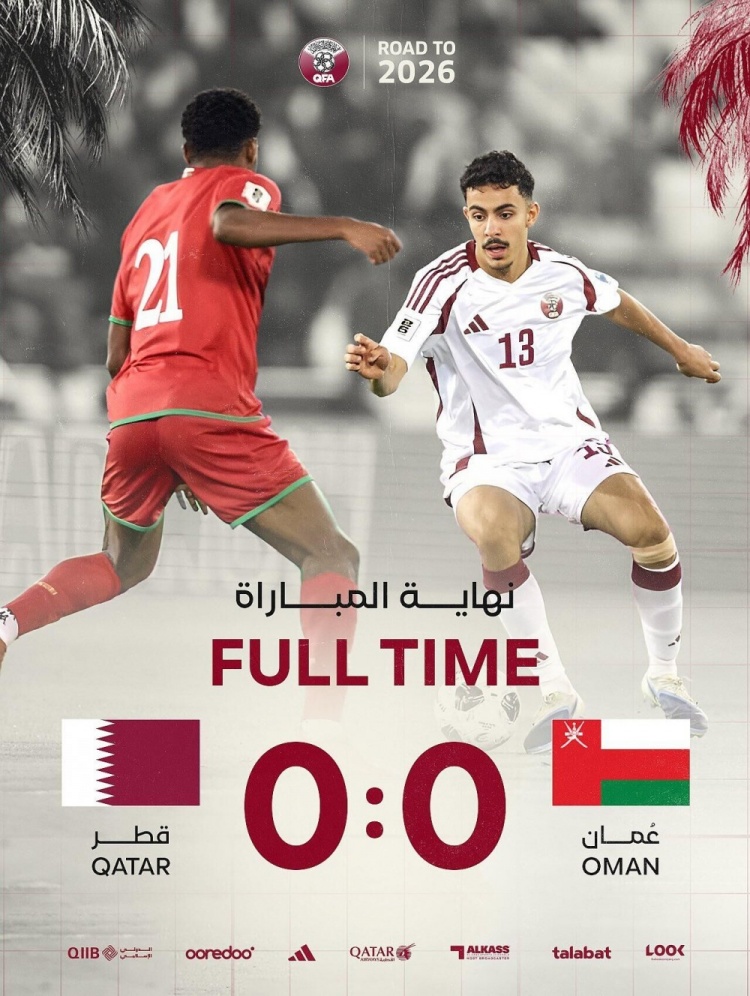 全场比赛结束,阿曼0-0卡塔尔。