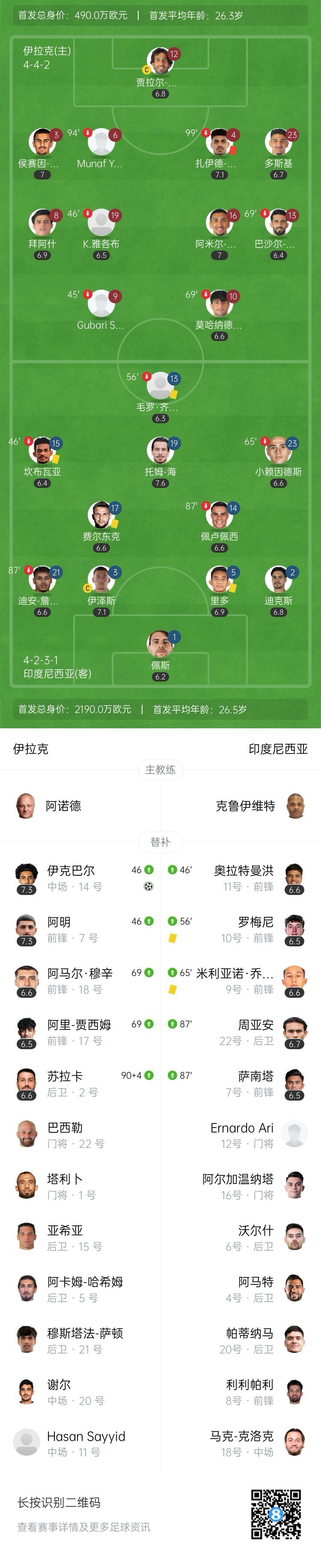 伊拉克领先!第76分钟,伊克巴尔禁区前沿晃开角度一记贴地斩,皮球直钻网窝死角,伊拉克1-0印尼!↓