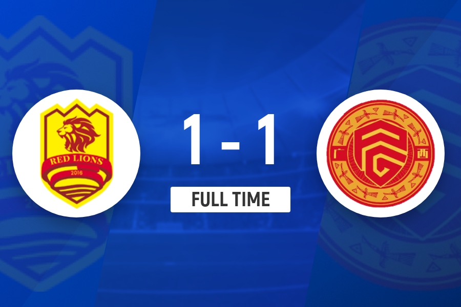 全场比赛结束,青岛红狮1-1广西平果。