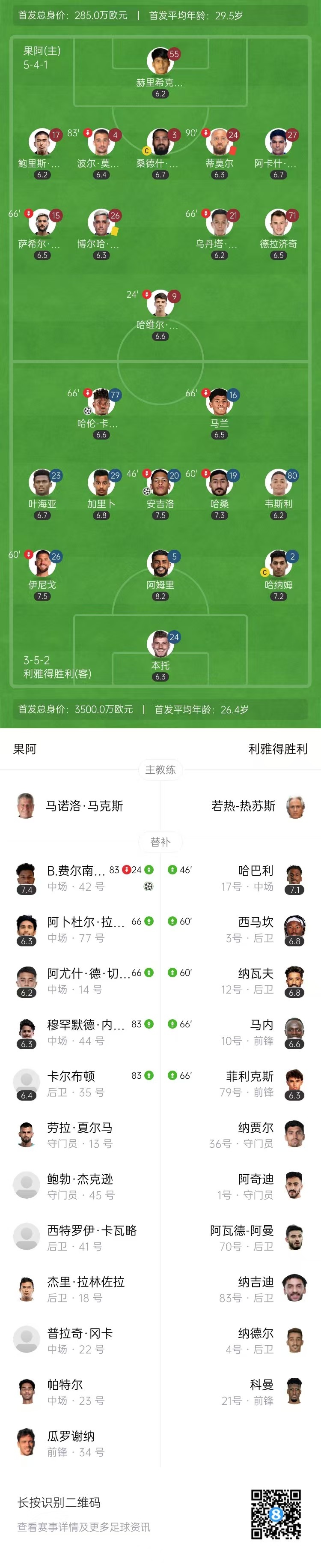 【双方首发阵容】