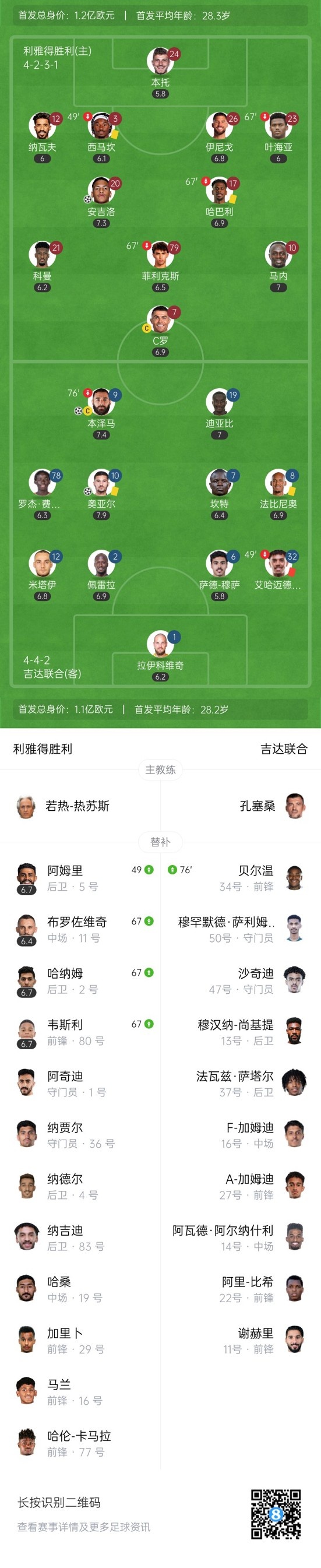 第29分钟,利雅得胜利扳平比分!C罗左路拿球下底横传被解围,第二点安吉洛抽射破门,利雅得胜利1-1吉达联合。↓