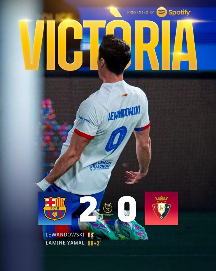 1月12日讯 西班牙超级杯半决赛,巴塞罗那对阵奥萨苏纳。上半场拉菲尼亚伤退。易边再战京多安助攻莱万先拔头筹,补时阶段亚马尔锁定胜局。最终巴萨2-0奥萨苏纳晋级决赛将战皇马。