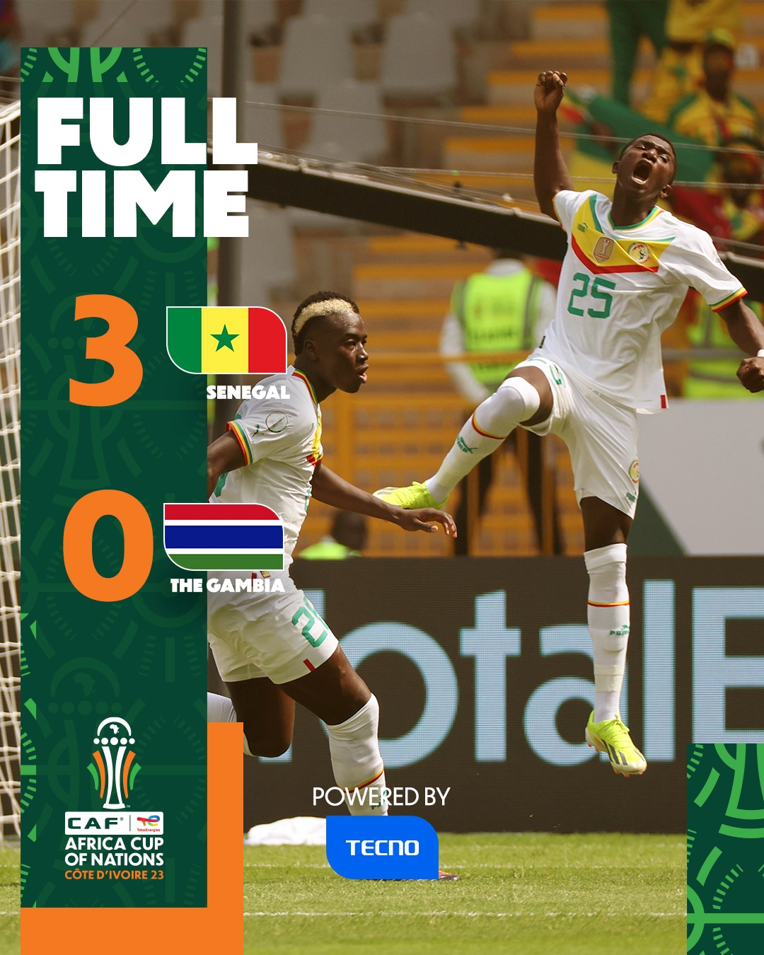 全场比赛结束,塞内加尔3-0冈比亚。