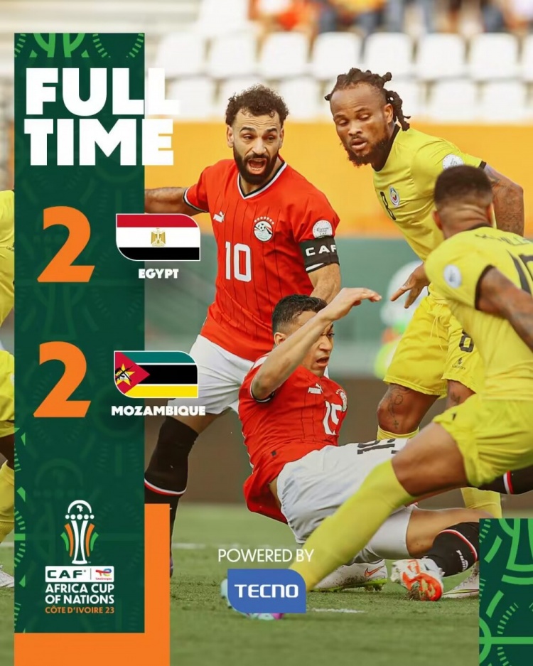 下半场补时7分钟。最终全场比赛结束,埃及2-2莫桑比克