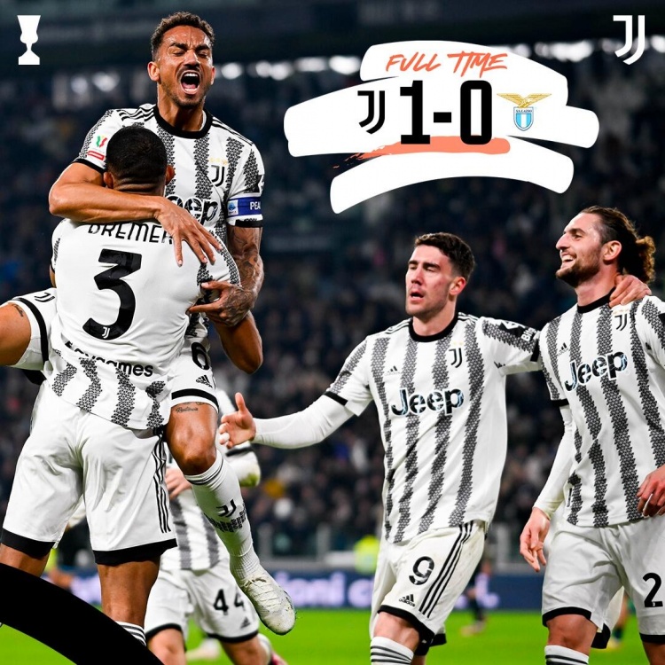 2月3日讯北京时间2月3日凌晨4:00,意大利杯1/4决赛,尤文图斯对阵拉齐奥。上半场,科斯蒂奇助攻布雷默破门为尤文取得领先;下半场,双方都未能把握住进球机会。全场比赛结束,尤文图斯1-0拉齐奥晋级四强,半决赛对阵国米!