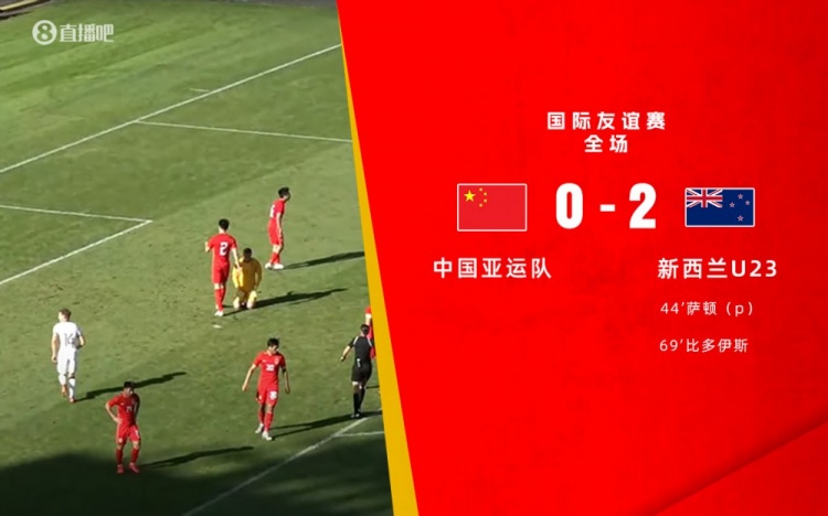 直播3月23日讯 北京时间3月23日上午10:30,国足亚运队在国际友谊赛中对阵新西兰U22。上半场,韩佳奇出击失误险送礼,何宇鹏送点致丢球。下半场,国足中路门户大开、对手单刀破门。全场比赛结束,国足亚运队0-2新西兰U23。