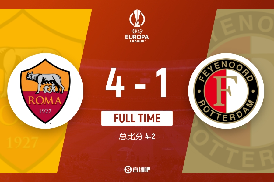加时赛补时3分钟,全场比赛结束,最终罗马4-1费耶诺德。